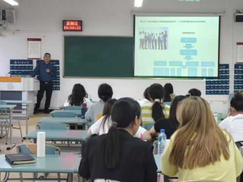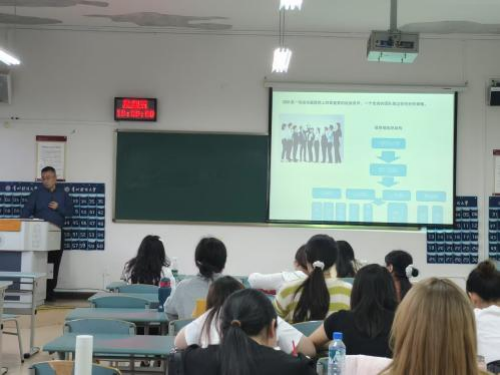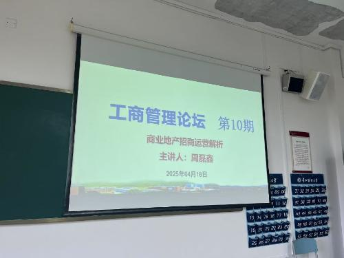 在崇德楼420教室成功举办第十期"工商管理论坛"。本次论坛以"商业地产招商运营解析"为主题,特邀贵州省群升置业有限公司副总经理周磊鑫担任主讲嘉宾,学院党委副书记何瑞主持,2024级MBA全体同学参与学习交流。