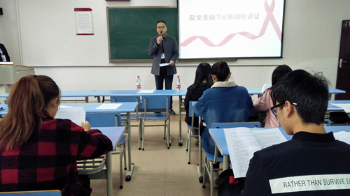 2017年11月21日下午15点30分,工商学院艾滋病防治公益宣讲会在勤学楼2-11成功开展,工商学院党委副书记陈劲松,团委书记孔淑华以及2016级、2017级同学参与了此次宣讲会。