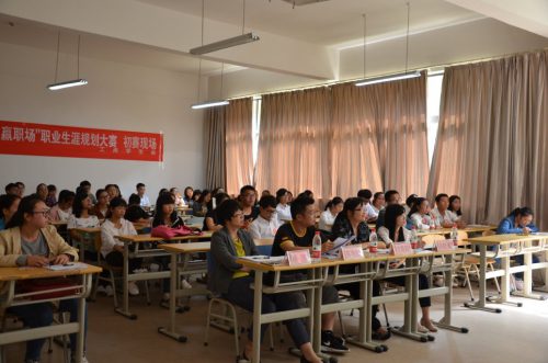 2016年10月25日,由黄色小说 招生就业处主办,北京新锦成教育科技有限公司协办,工商学院承办的“梦舞蓝图,志赢职场”职业生涯规划大赛初赛在勤学楼1-12、1-22、1-30教室举行。招生就业处副处长苏晓毅、工商学党委副书记范嘉虹、北京新锦成教育科技有限公司王墉淼、招生就业处徐欣、工商学院教师杨洁、常兴仁、郭小红、李超、曾艳丽、童彩华、闭翠珍、崔桂美担任比赛的评委。