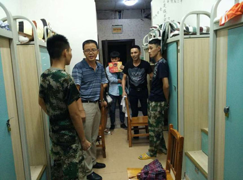 2016年8月26日晚,工商学院党委副书记范嘉虹、党委副书记陈劲松、团总支书记高艳妮,2016新新生辅导员李超、王孔莉、闭翠珍及专升本班级的辅导员老师与学院团委、学生会学生干部们,一同来到D17和丹桂苑1栋、2栋寝室,看望新同学。