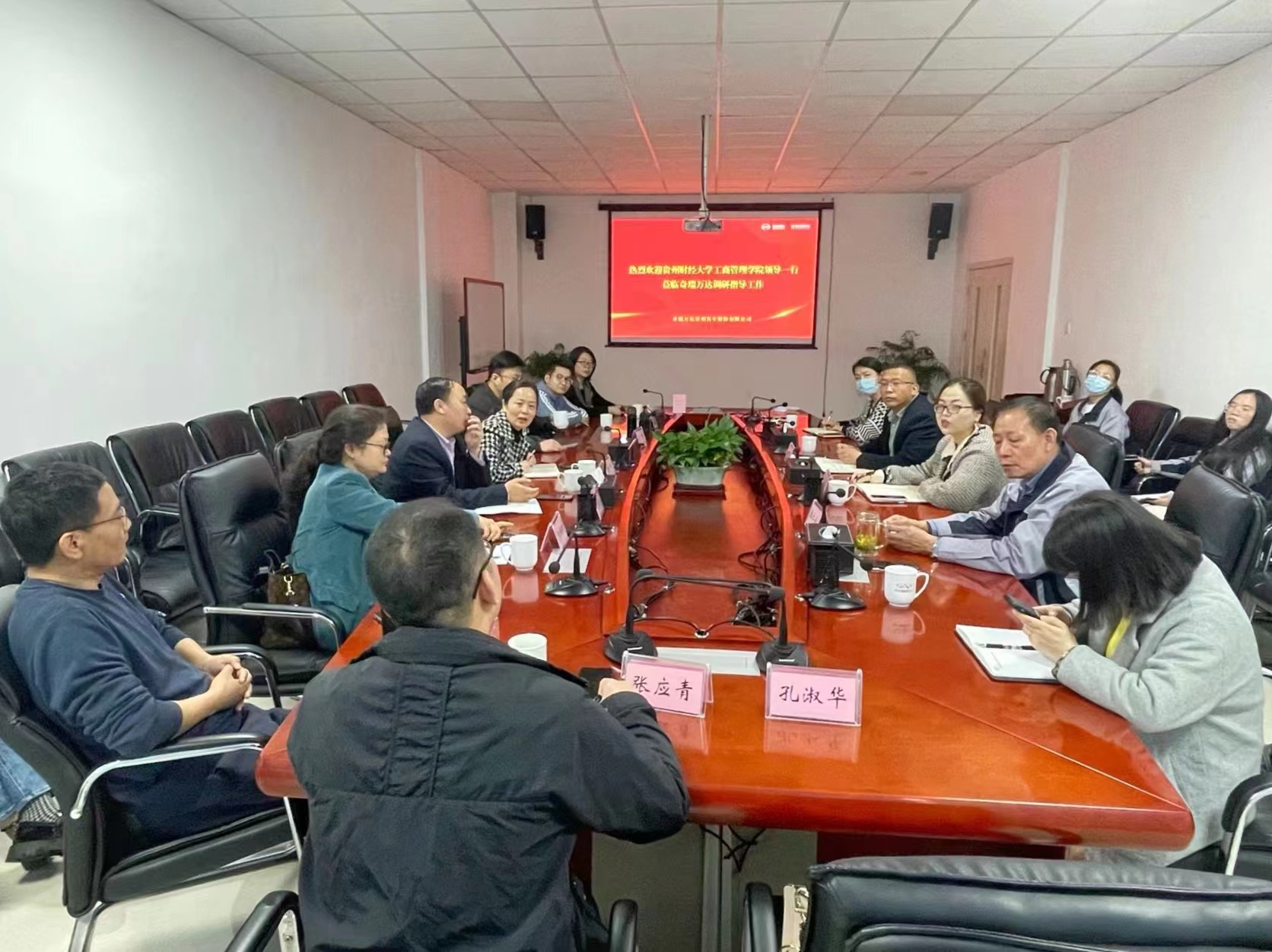 座谈会上,李洪达总监、王仁兴总监分别介绍了公司在财务管理、市场开拓、人力资源管理以及公司运营方面存在的困惑,希望能够通过实训基地建设、项目研究等找到合作的契合点,切实解决公司实际问题;蔡升桂教授、王祯敏副教授、张应青副教授分别就自身擅长领域与研究专长做了交流发言。最后,双方表示可以优势互补,进一步创新合作方式,加强产教深度融合、最终实现互惠共赢。