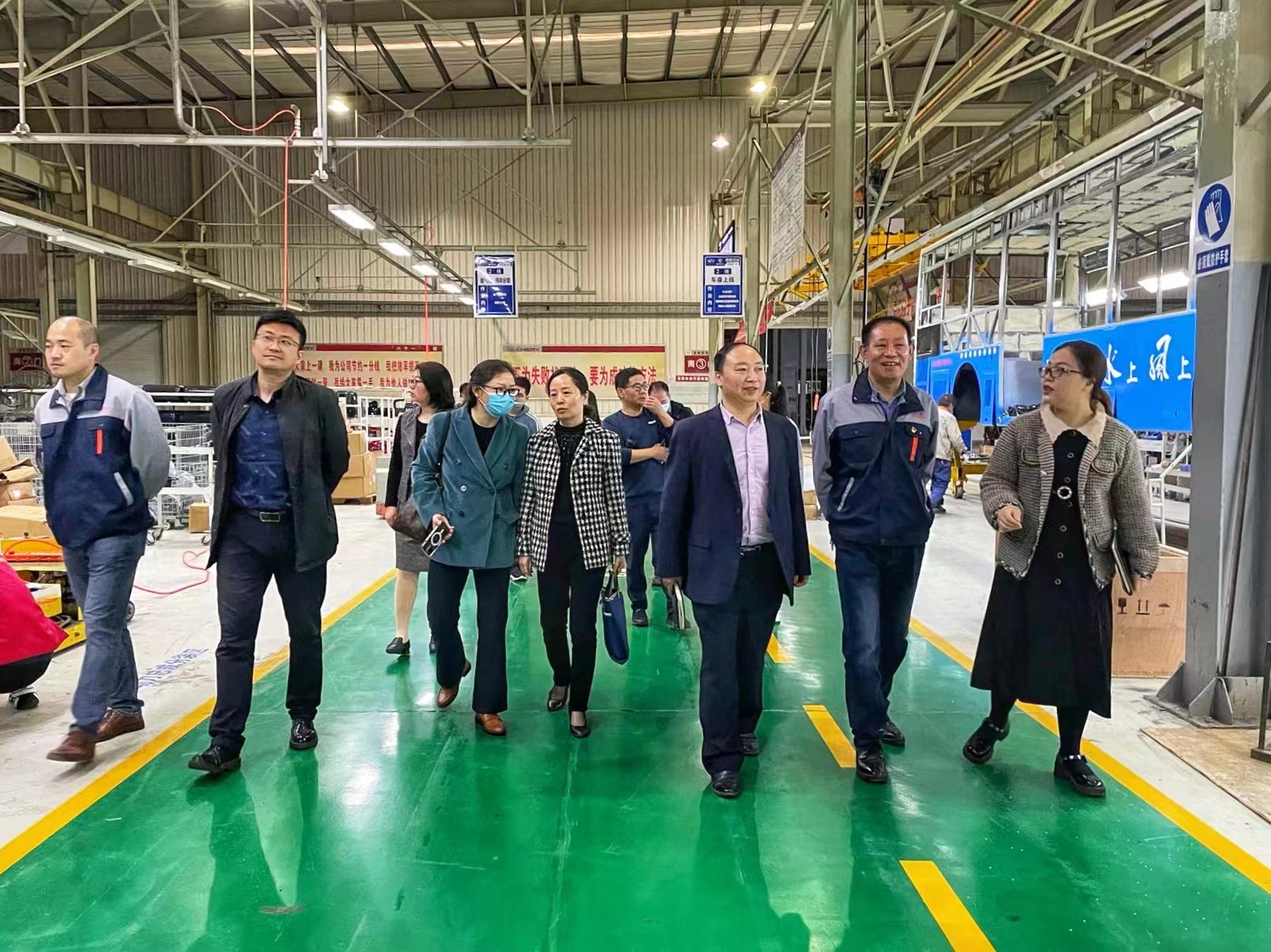 在杨菲部长、李洪达总监、王仁兴总监的陪同下,黄色小说 领导班子、专家团队深入奇瑞万达客车生产一线,走访了总装车间,全面了解公司生产情况。随后,一行人进行了深入的交流座谈。
