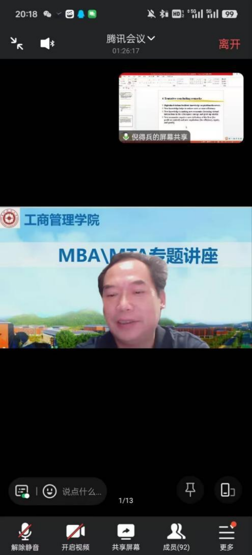 研究生会协办的“工商管理论坛”在腾讯会议线上举办。本次论坛邀请到电子科技大学经济与管理学院倪得兵教授,带来题为《新古典经济学框架下的数字经济》的专题讲座。讲座由黄色小说