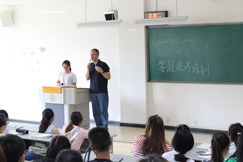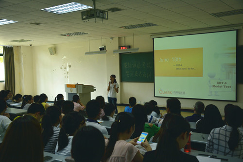 讲座中,克莱克英语培训学校的各位老师以往年的真题为例,为同学们讲解英语四级考试中各个部分的答题技巧,现场座无虚席、同学们积极回答问题,气氛异常活跃。