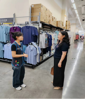 副院长王健菊与物流专业实习指导教师肖强一起来到沃尔玛,开展实习巡查。