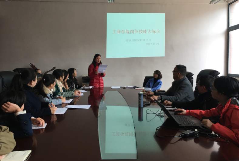 为进一步推动“效率贵财——管理效能建设年”活动的深入开展,提高管理人员的管理能力、创新能力、服务能力和业务技能及保障能力。11月23日,工商学院的杨春宇副院长、范嘉虹副书记、陈劲松副书记及全体行政管理人员和辅导员在崇德楼427会议室举行岗位技能大练兵活动。