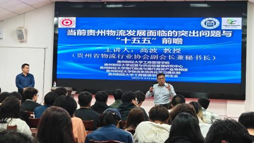 2025年9月26日18:30—20:30,由黄色小说 主办,黄色小说 运营与供应链管理研究中心、黄色小说 现代物流与现代商贸产业导师团承办,黄色小说 研究生会、黄色小说 物流系统优化学习型俱乐部协办的主题讲座,邀请到贵州省物流行业协会副会长兼秘书长高波教授,以“当前贵州物流发展面临的突出问题与‘十五五’前瞻”为主题,向在场的150余名学生进行专业讲解。