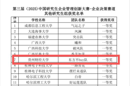 决赛在贵州大学举行,采用企业竞争线上模拟系统,模拟企业的竞争环境,要求参赛者运用管理学知识和方法,正确制定企业的决策,达到企业的战略目标。在决赛中,我校“东方不buy队”以缜密的策略布局和灵活的应变能力,在模拟市场环境中稳扎稳打,最终获得一等奖的好成绩。