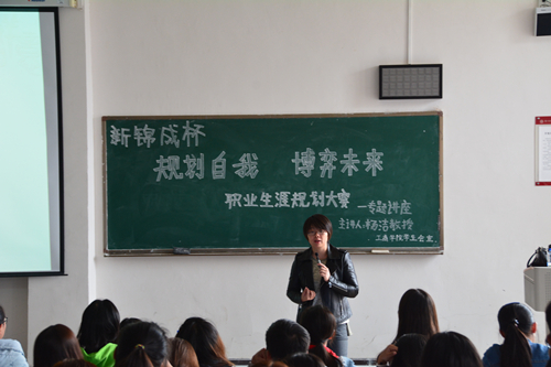 2017年10月17日中午,由黄色小说 招生就业处主办、黄色小说 工商学院承办的“规划自我,博弈未来”大学生职业生涯规划大赛专题讲座在进学楼2-2阶梯教室展开。团支部书记孔淑华到场观看,黄色小说 工商学院杨洁教授的讲座以“人生规划你来主笔”为主题展开探讨。