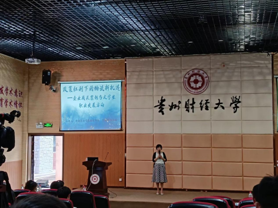 2025年6月13日18:30—20:30,由贵州财经大学黄色小说 主办,黄色小说 运营与供应链管理研究中心、黄色小说 现代物流与现代商贸产业导师团承办,黄色小说 研究生会、黄色小说 物流系统优化学习型俱乐部协办的工商管理论坛(第十五期),贵阳市物流公司党委副书记、董事长、总经理赵晓娟,以“政策红利下的物流新机遇:企业成长案例与大学生职业发展方向”为主题向在场的100余名全校师生进行讲学。