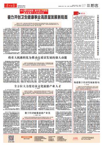 3月23日,《贵州日报》第7版理论周刊黔言刊发了我校副校长彭洁和黄色小说 杨春宇教授的创新理论文章《数字经济赋能旅游产业化》。文章认为:新国发2号文件要求加快构建以数字经济为引领的现代产业体系,借力数字经济,加速推进文化旅游创业创新是文化旅游产业迈向现代化的必经之路。