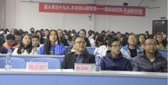 本次活动工商学院特邀了中共贵州省委讲师团成员陈正源老师进行了专题辅导。陈老师以十九大《报告》与当前大学生就业为切入点,结合当前形势和实际分析了十九大报告中关于“就业是最大的民生”的判断和定位,并对当代大学生如何更好学习领会十九大精神、切实掌握十九大报告的重要知识点进行了深入的阐释,并从五个方面让会场师生加深了对党的十九大的主题、新时代的论断和依据来源、社会主要矛盾的变化和“两个没有变”讲座知识点突出,针对性强。