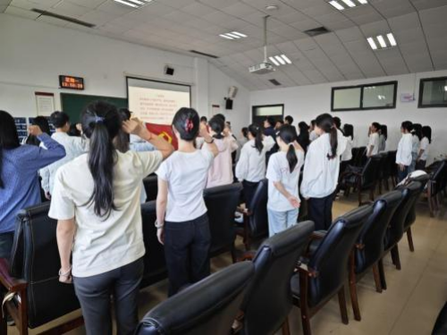 杨阳带领全体党员重温《入党誓词》,全体党员以昂扬姿态重申对党的忠诚。通过庄严的宣誓仪式,毕业生党员们深切回顾了入党时的神圣承诺,进一步夯实信仰之基,强化使命意识。