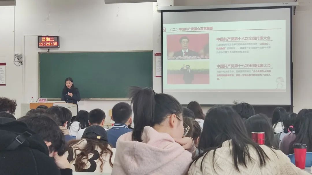 团课培训第二课,学院孔淑华老师以“深刻感悟中国共产党始终不渝为人民的初心宗旨”为主题。授课内容里不管是铁人王进喜,还是疫情当下的感动中国人物张定宇,无一不在向我们诠释什么是共产党人全心全意为人民服务的初心宗旨。最后孔淑华呼吁同学们在以后的学习中向党员看齐,自觉地将全心全意为人民服务的宗旨融入到日常的学习生活中,自觉地将知识的学习与建设中国特色社会主义事业相联系,与实现共产主义相联系。