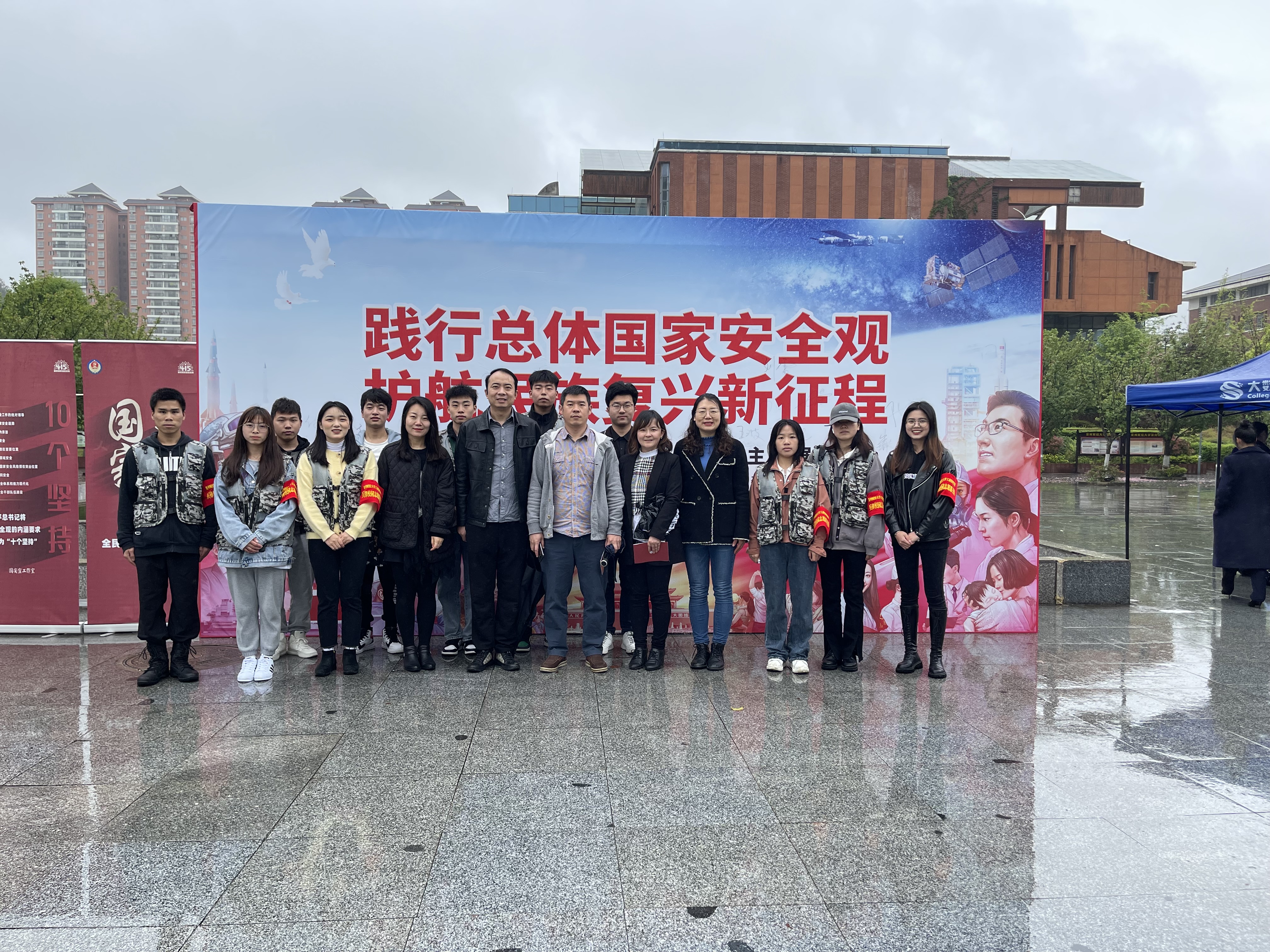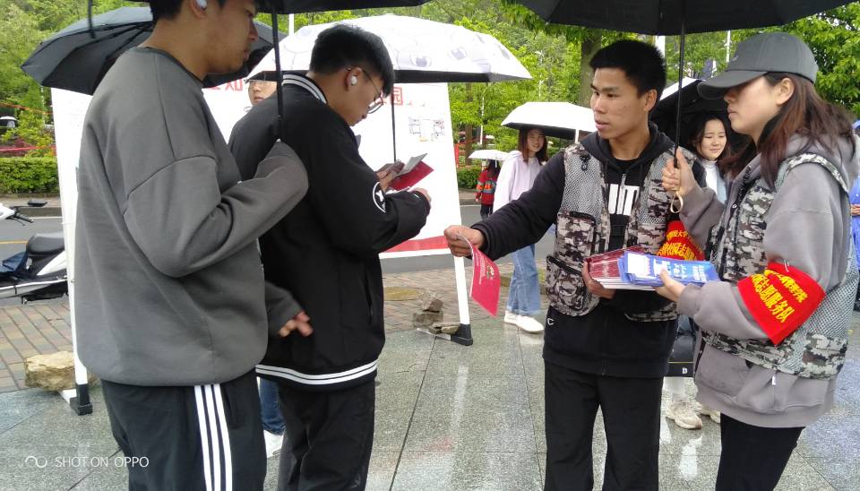 “兵锋”校园志愿服务队的同学们迎着濛濛细雨,主动向路过的老师和同学们介绍展板的内容,积极宣传总体国家安全观,发放国家安全日宣传资料,让更多的师生了解到国家安全的重要性,在学校内形成了积极维护国家安全的浓厚氛围。