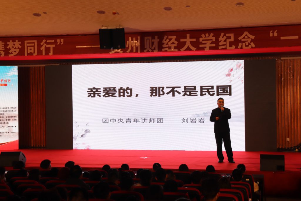 团中央青年讲师团代表刘岩岩以“亲爱的,那不是民国”为主题,为同学们介绍北洋政府时期的社会背景,同时也指出:“我们生在新时代,我们是如此幸运,可以用自己的奋斗见证这个伟大的时代,我们的成就感、获得感、安全感将前所未有的与这个国家的发展繁荣紧密相连。”