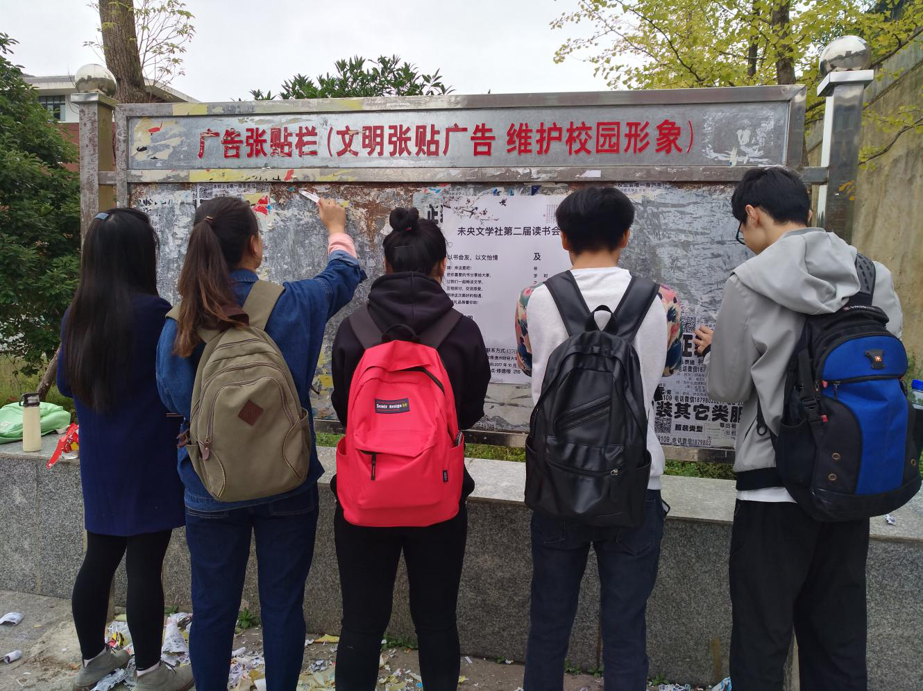 校园内开展了2017年秋季入党积极分子实践活动。工商学院学生党建工作中心成员及工商学院2017年秋季入党积极分子参与此次清理校园广告栏的实践活动。