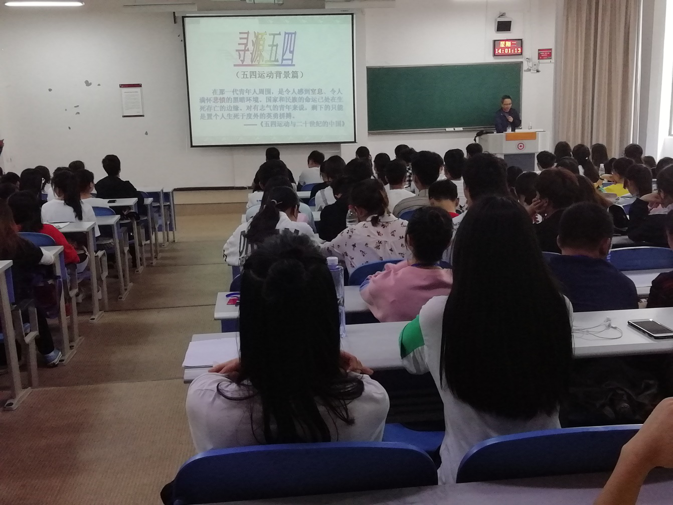 活动开始,首先由童彩华进行致辞,要求同学们一定要在在学习上积极认真、生活中努力进取,只有这么才能更好的为民族复兴奉献自己的力量。接下来,工商学院党委常务副书记崔军老师为大家授课,主要讲述五四运动的历史及五四精神的传承,要求各位学员要积极进取,继承“五四”团结和开拓创新的精神,在生活中发挥模范带头作用。在授课之后,大家更加深入地了解了五四文化及其精神,并表示在今后的学习生活中,将会更加努力学习,拓展创新,不断加强自身建设,继承五四精神,为党和国家发展做出贡献。