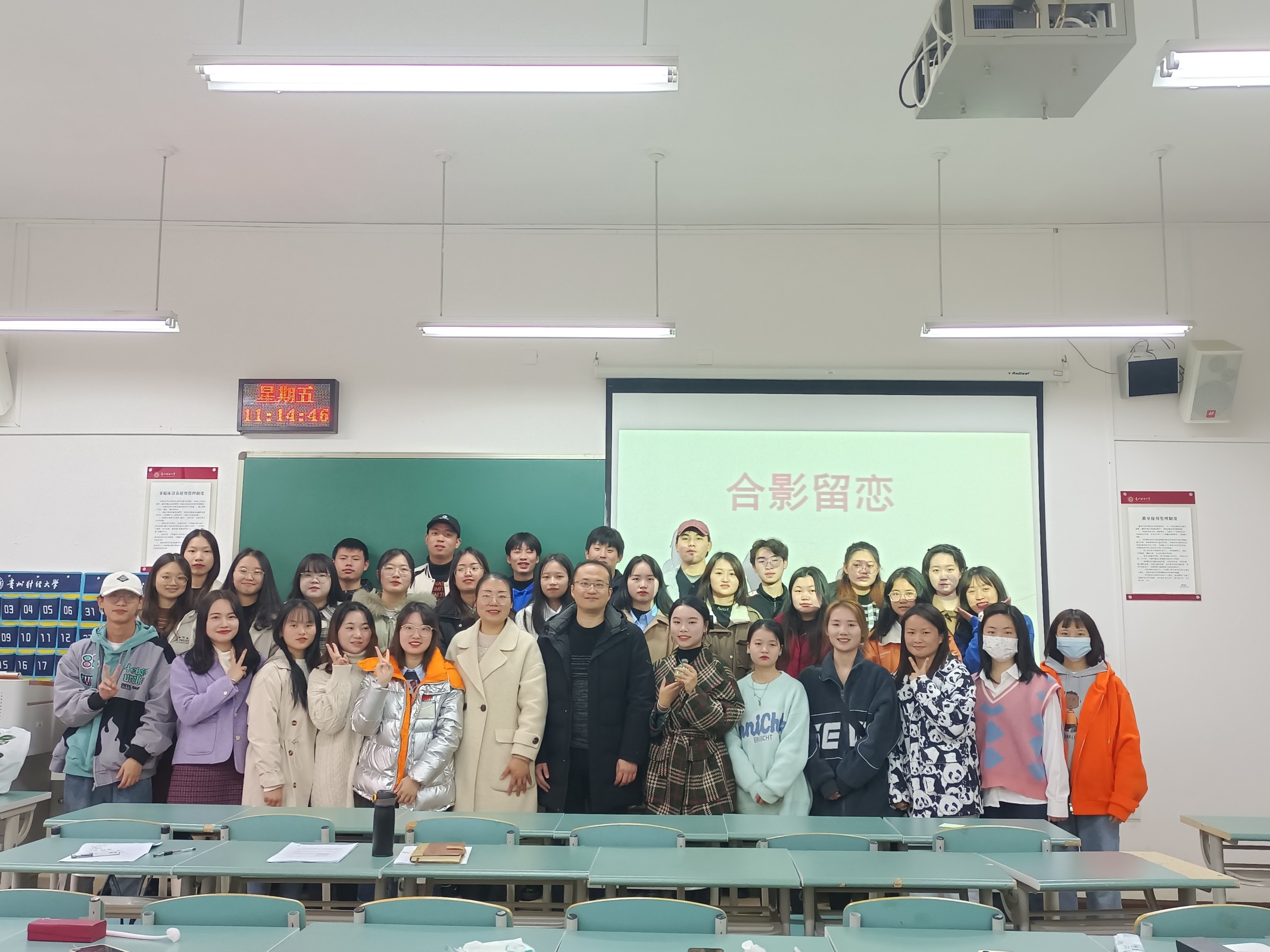 辅导员蒋小芳对本次班会进行总结,充分肯定了本次班会的成功举办,感谢班干们的精心筹备。最后一个环节,由班干给每个同学发放心愿卡,大家在卡片上写下自己的心愿和规划放进心愿瓶中,希望在大学毕业最后一次班会打开时大家的目标都得到了实现。