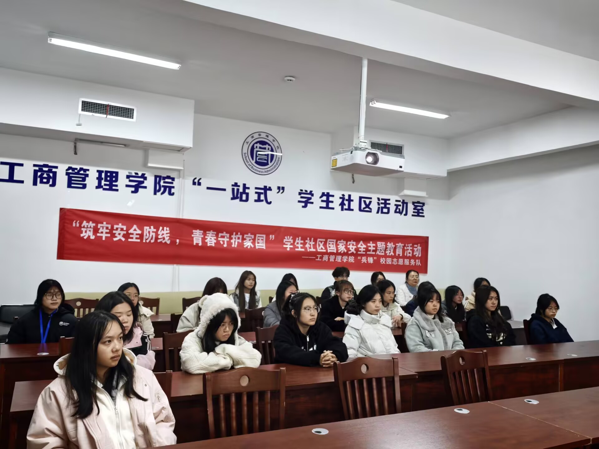 “兵锋”校园志愿服务队在翠竹苑三栋四楼活动室举办“筑牢安全防线,青春守护家国”学生社区国家安全主题宣讲活动。