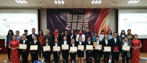 2016年11月1日,由我校招生就业处主办、北京新锦成教育科技有限公司协办、工商学院承办的“梦舞蓝图、志赢职场”职业生涯规划大赛决赛落幕。北京新锦成教育科技有限公司吴慧琼、工商学院党委书记余颂、招生就业处副处长王治航、苏晓毅,校团委副书记雍新艳、工商学院党委副书记范嘉虹、陈劲松,杨洁、郭小红老师,招生就业处徐欣老师,担任大赛的嘉宾和评委。