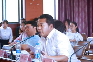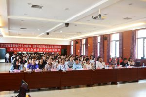 工商学院团委书记孔淑华。贵阳市企业发展服务机构协会会长、贵阳市委统战部共建共享同心双创服务团团长于强、贵州腾云教育科技有限公司总经理陈其铁、副教授何山、副教授康文峰等担任本次大赛评委。