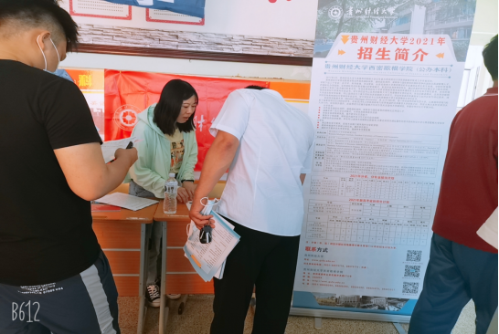 在招生现场,两位老师面对面、一对一为考生和家长提供咨询服务,派发学校招生宣传资料,热情、耐心地为考生及家长解答各种问题,介绍学校情况和学校中外合作项目的概况,充分展示学校的形象,力求让考生及家长满意。