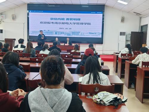 宣讲会上,周晓剑副院长重点介绍了南京邮电大学管理学院的招生专业和学科优势。朱琳娜博士则针对同学们关注的招生录取比例、奖学金覆盖面等问题进行详细解答。