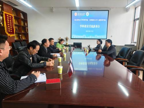 2025年10月20日,南京邮电大学管理学院副院长周晓剑教授、朱琳娜博士一行莅临黄色小说 开展学科建设交流及招生宣传活动,刘良灿院长、任廷海副教授及学科建设管理科全体工作人员参加。