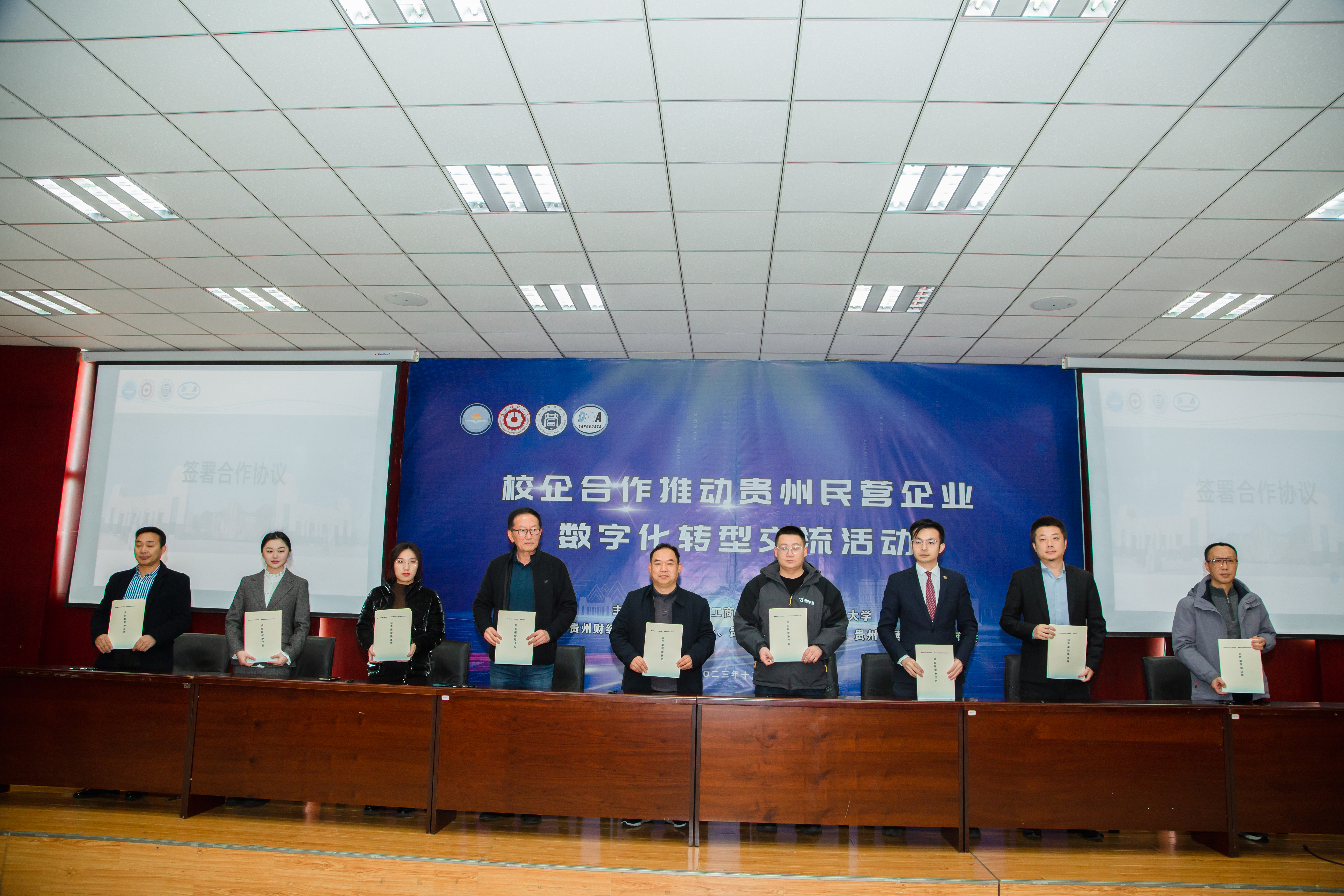 与贵州车行家网络贸易有限公司、满帮集团、长通集团、贵州首杨企业管理有限公司、通源集团、贵州合力惠民民生超市股份有限公司、贵州商数易数字贸易有限公司等7家企业、贵州省博联大数据商会签订了合作协议,设立了研究生工作站、实践基地并聘请了相关人员担任学院校外合作导师。