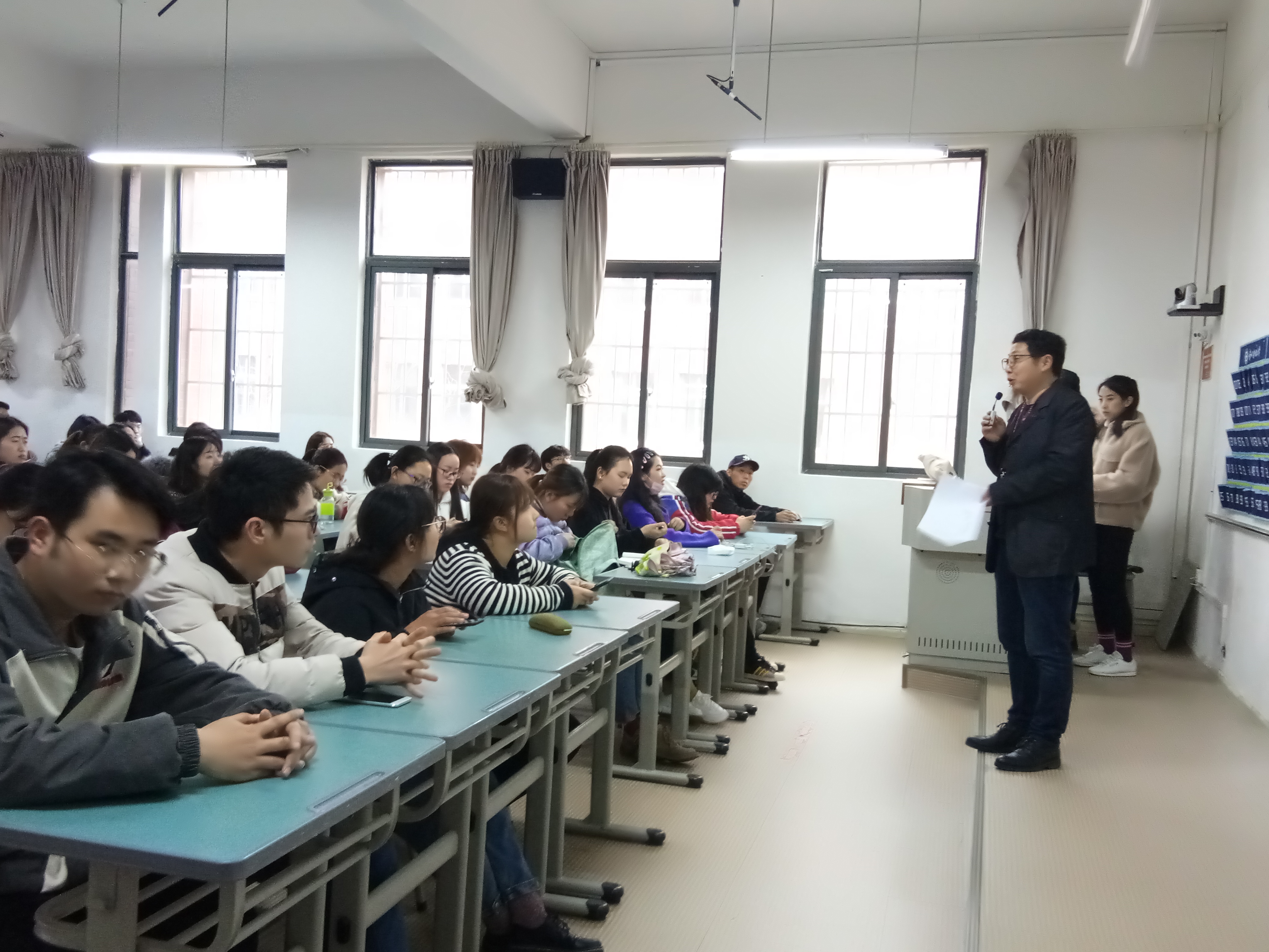 在大会上,首先由陈江涛老师讲述本次专业认知实习的目的、实习时间、实习公司、实习报告撰写以及相实习期间的相关注意事项等。陈老师要求学生要在专业认知实习之前做好充分的准备,例如了解实习公司的历史背景、经营理念;除此之外,陈老师还特别强调了在专业认知实习期间的安全注意事项。