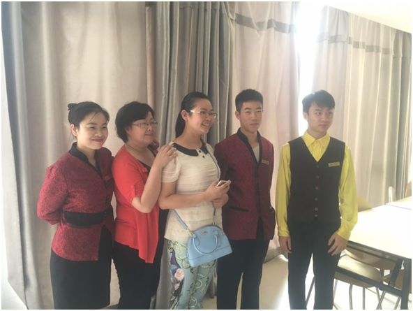 2018年8月20日,黄色小说 酒店管理教研室谢飞老师和会展教研室吴倩老师前往群升豪生酒店探望实习生。黄色小说 2015级酒店和会展专业的48名学生于7月初走上了酒店实习的岗位,开始了他们在酒店实际操作的实习学习生涯。在实习期间指导老师还通过实地看望、网络交流、电话联系等方式,鼓励、指导实习生并解决了他们在酒店的实际困难。