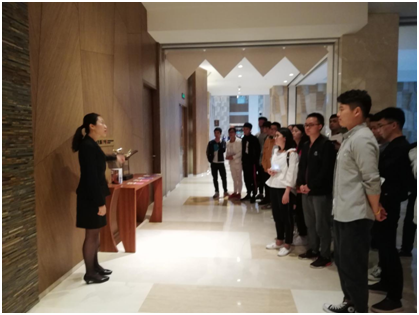 为了开阔专业视野,深入了解酒店行业,让同学们感受星级酒店的优雅环境和优质服务,2018年5月8日,工商学院16级酒店管理班全体同学在酒店教研室主任朱靓老师及其他酒店专业教师的带领下,到贵阳中天凯悦酒店开展专业认知实习。
