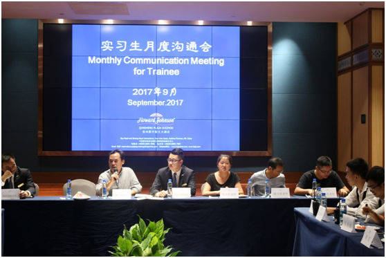 沟通会由酒店人力资源部张陆洪总监主持,会上,胡北明院长对实习生已经完成的2个月辛苦的实习任务表示非常满意,鼓励同学们继续保持不怕困难的优良作风;同时也对后续实习工作提出以下要求:一是专业实习过程中,要继续发扬吃苦耐劳的精神品质,高质量