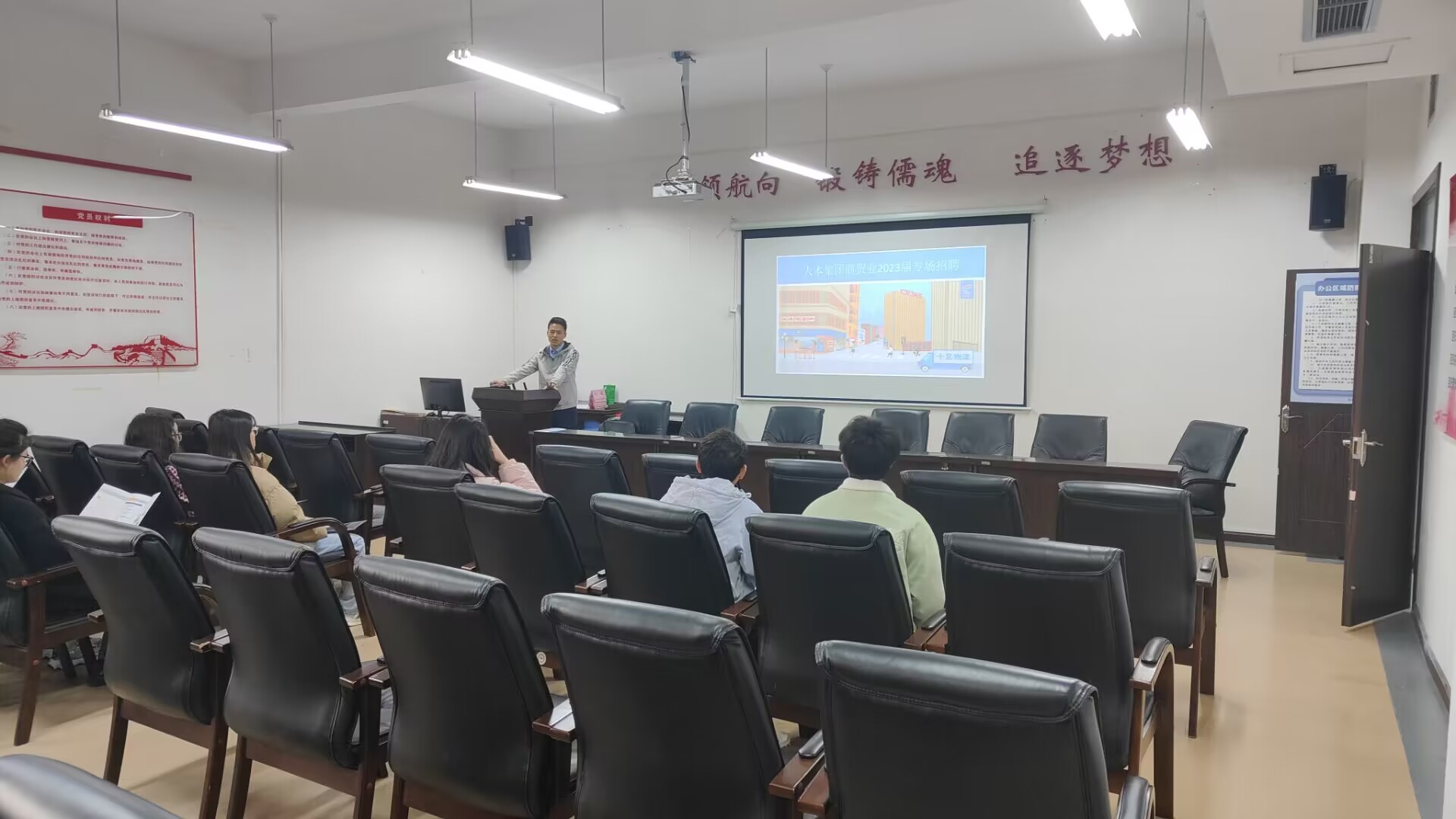 于崇德楼306会议室举办了人本集团商贸业校园专场招聘会。本次招聘会邀请到人本集团商贸业务部招聘负责人李艳磊,招聘职位包括市场营销、物流仓储、门店运营等多种与本院专业对口的岗位。