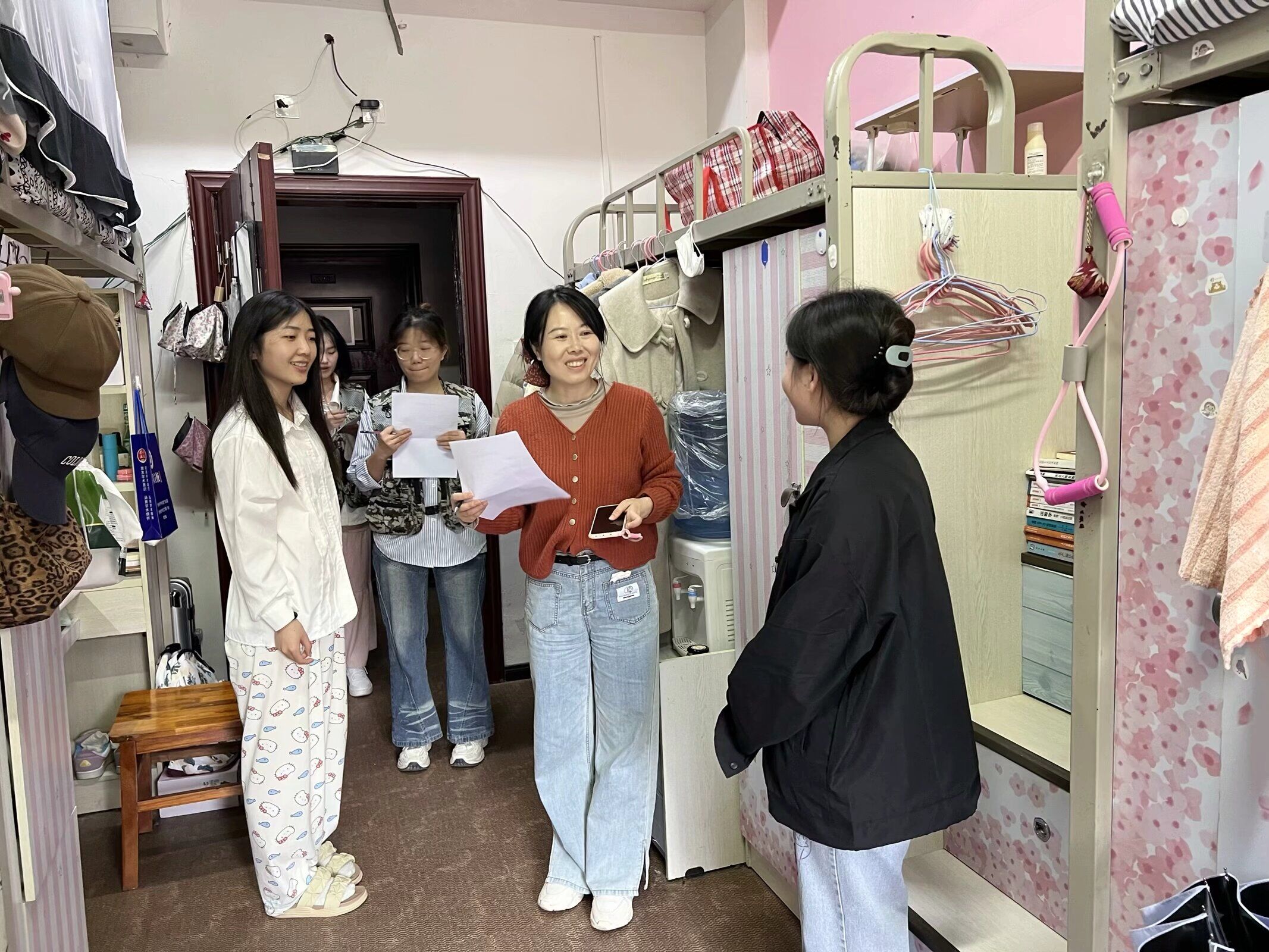 在检查评比过程中,有的寝室窗明几净,物品摆放井然有序,营造出干净舒适的生活氛围;有的寝室通过书法、绘画作品,彰显独特文化品位与艺术气息。但也有部分寝室存在卫生打扫不彻底、物品杂乱,寝室异味浓等问题,巡查人员当即记录并耐心给予整改建议,督促同学们尽快改进。
